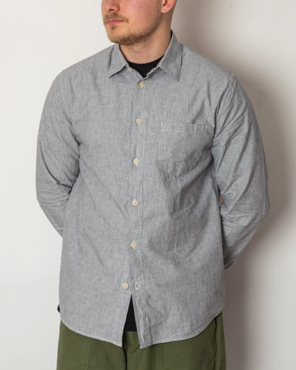 -Button placket, single chest pocket