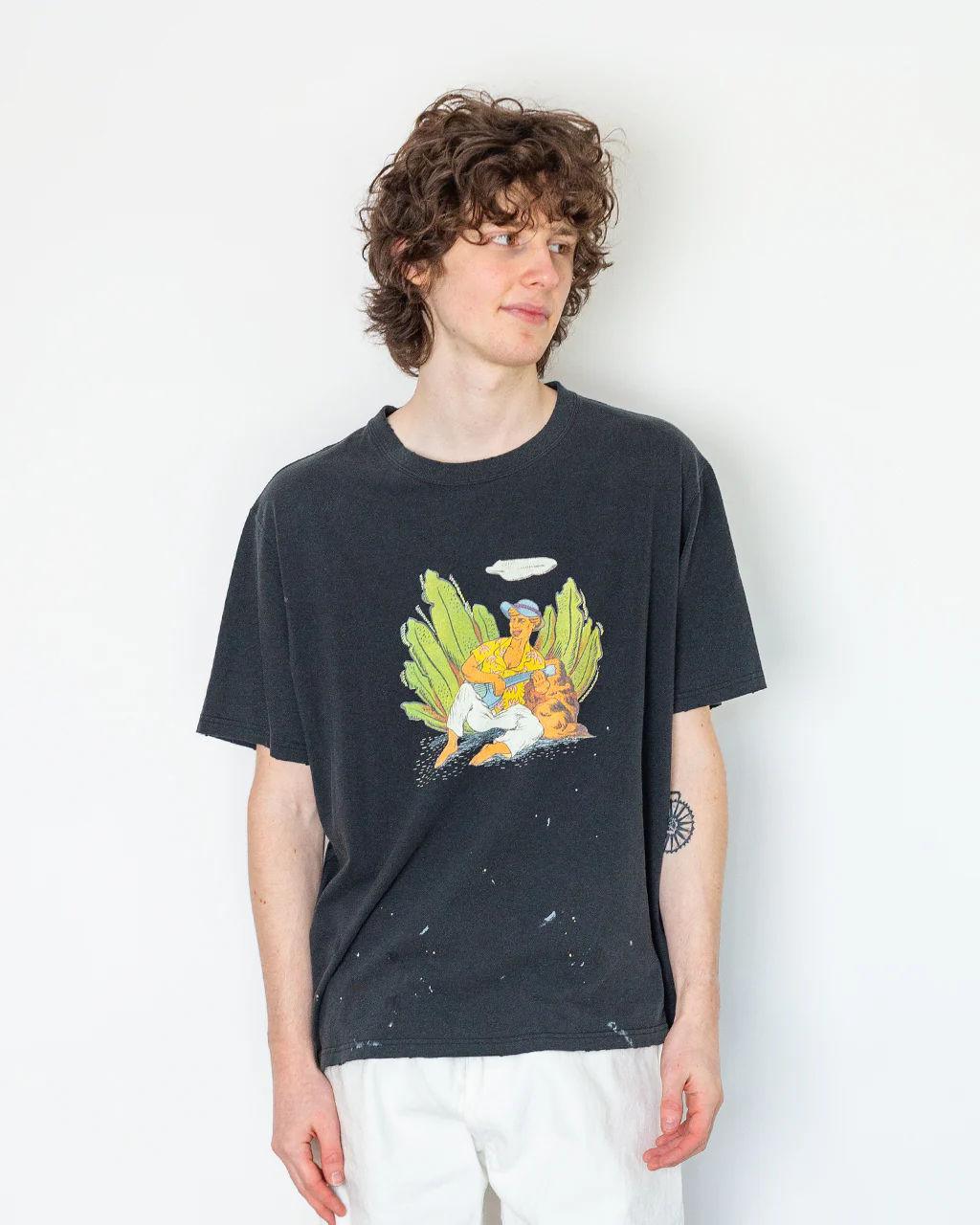 -Distressed graphic print on chest